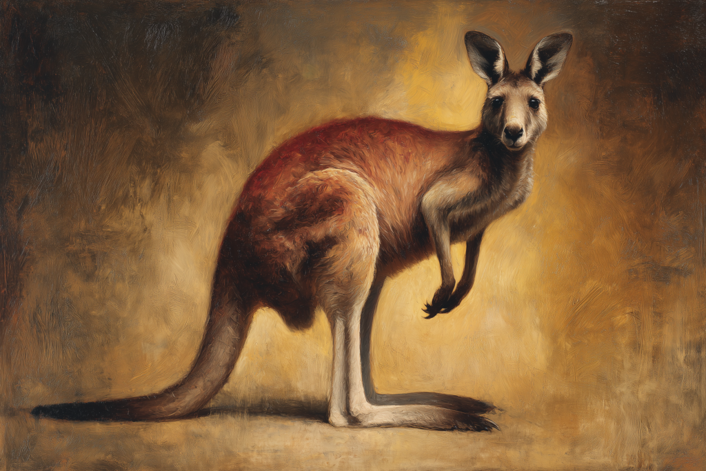 Kangaroos are large, powerful herbivores adapted for life in open terrain. Their immense hind legs and muscular tails allow them to cover great distances in a single bound and deliver punishing kicks when threatened. Though naturally wary and non-aggressive, a startled kangaroo can seriously injure careless travelers before vanishing back into the plains.