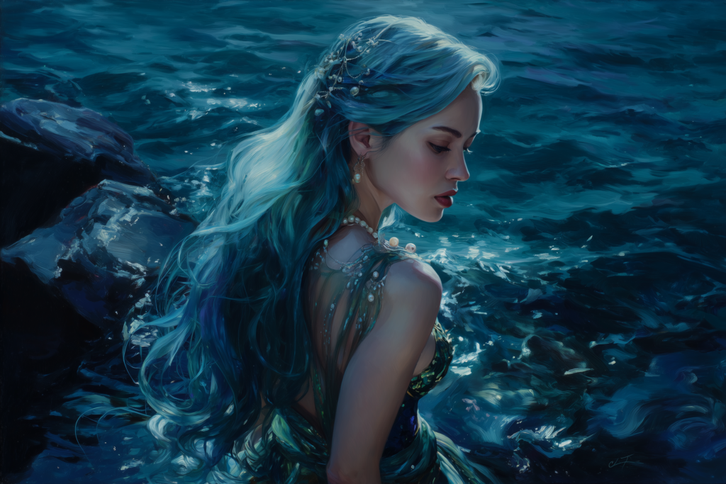 “Nereids are elusive spirits of the sea, weaving charm and currents alike to protect their coastal domains. Sailors speak of their beauty and peril in equal measure, for a Nereid’s smile can guide or drown.”